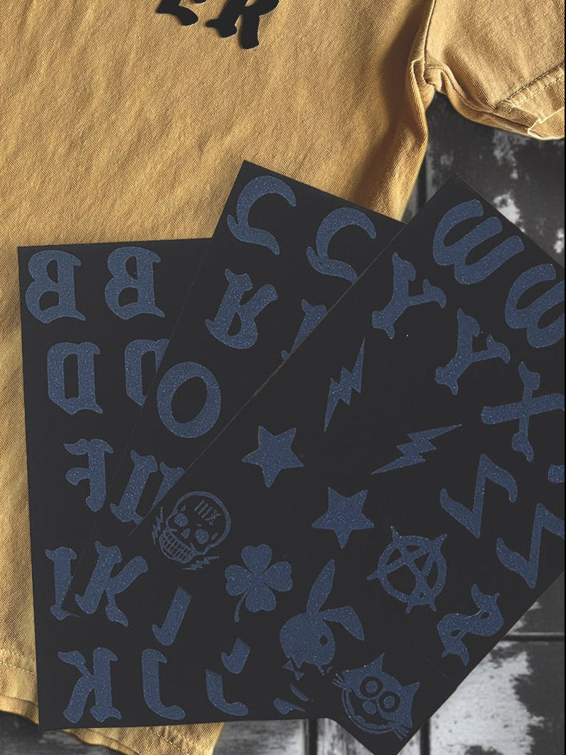 • 61 Black Velvet Iron-on letters/symbols (51 letters, 10 special character symbols)