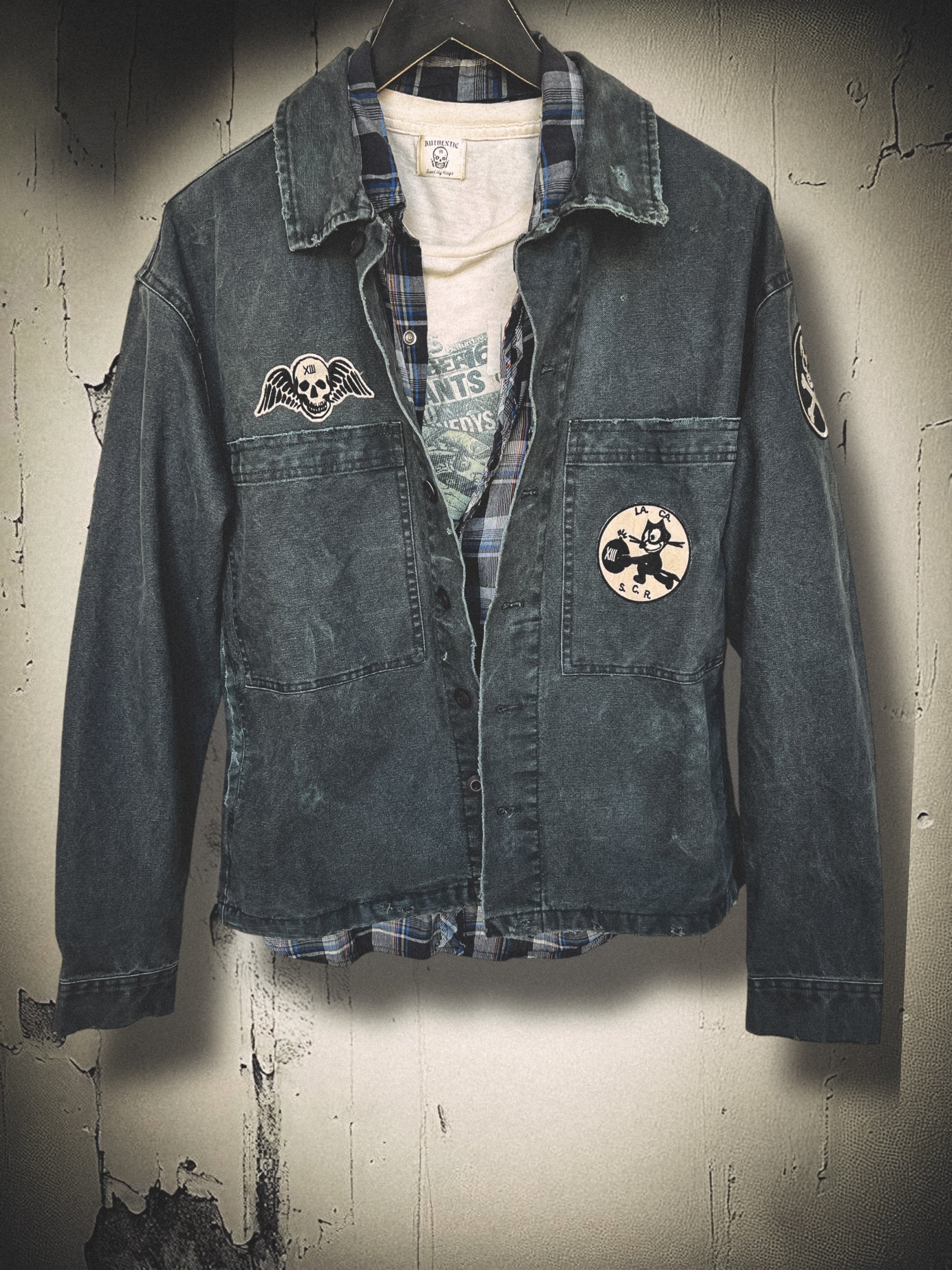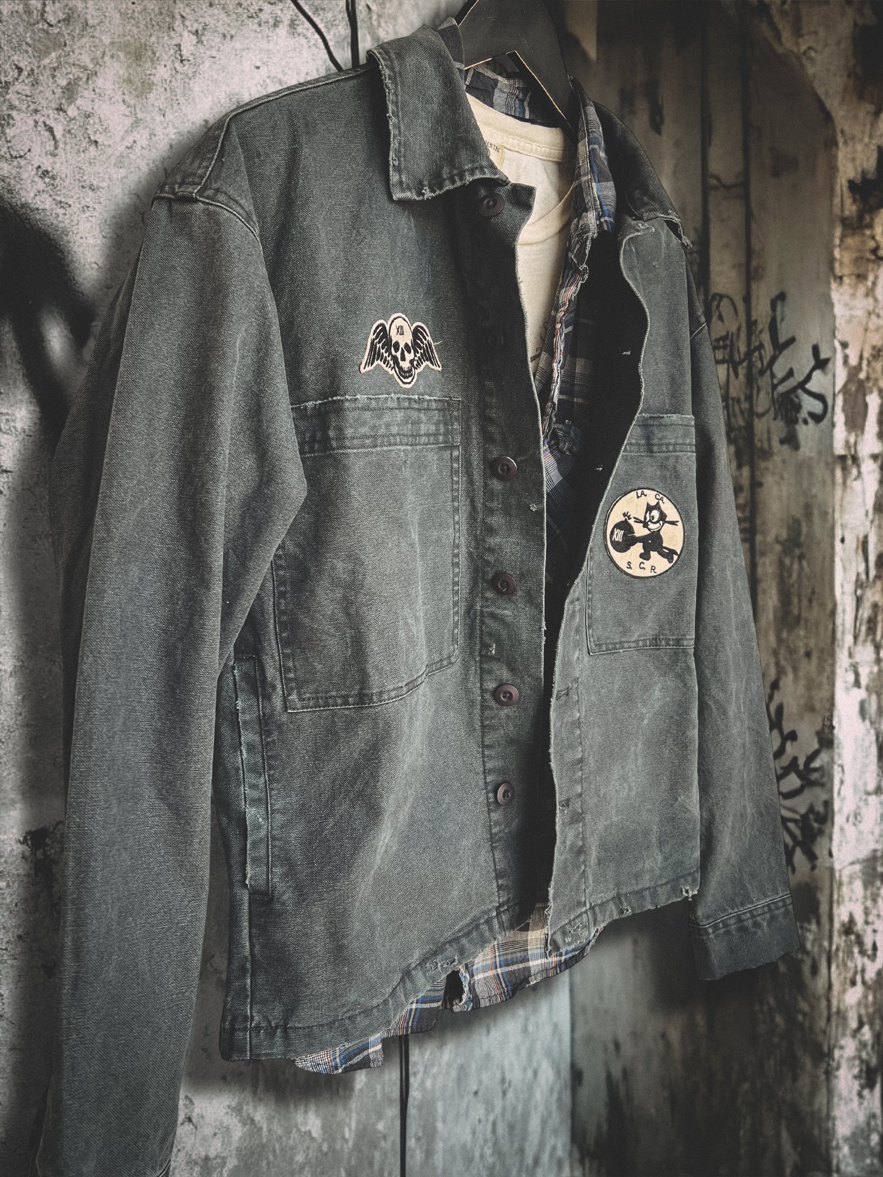 Crafted with premium detail, from mid-weight, soft canvas, this jacket has been hand-distressed, sun-faded, and finished with custom patches for that worn-in, lived-in feel from day one. Built to age beautifully and become a true closet staple.